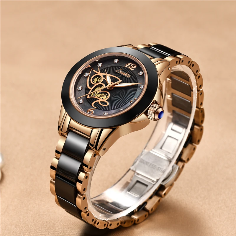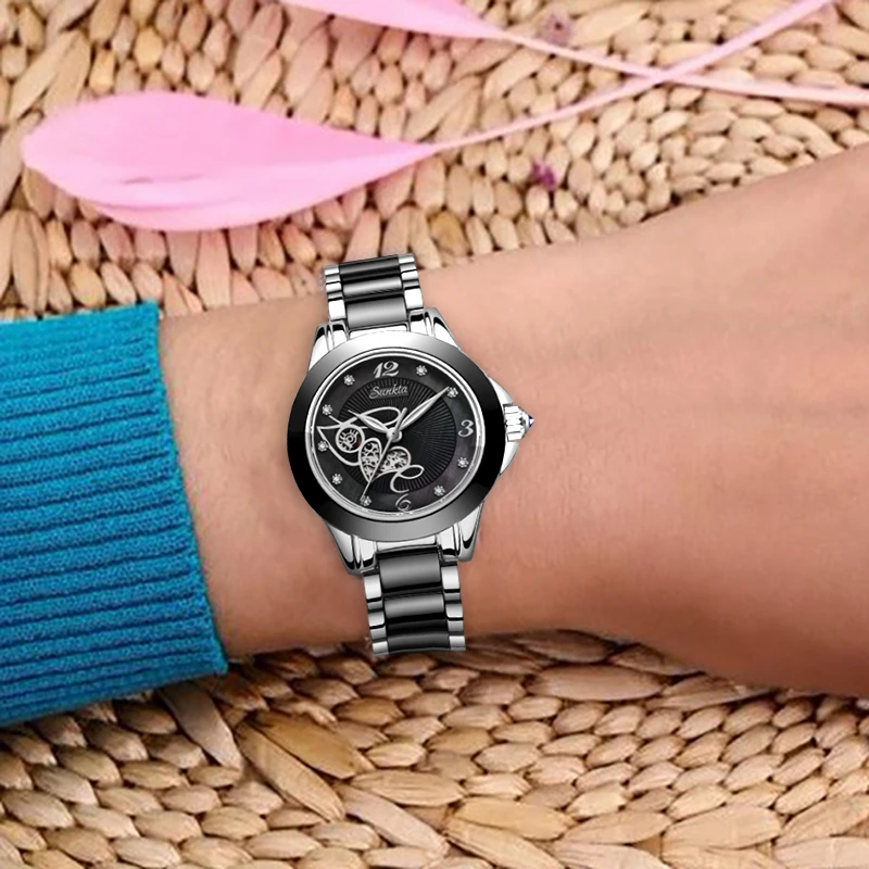 | SUNKTA Fashion Waterproof Women Watches Top Brand Luxury Quartz Watch Women Diamond Surface Ceramic Strap Watch Relogio Feminino |