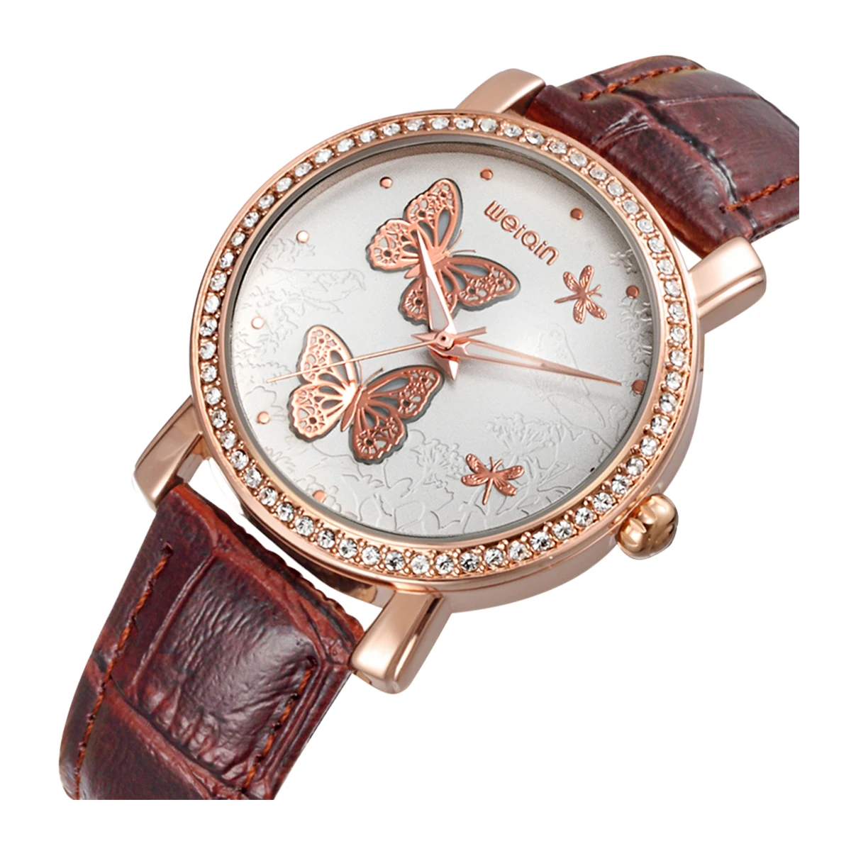 2020 New Products Fashion Luxury Rhinestone Crystal Ladies Watch Leather Strap Casual Waterproof Quartz Ladies Watch Ladies Gift