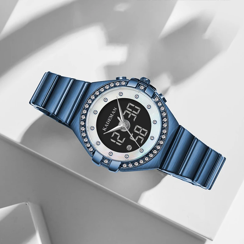 K9080 Kademan New Women Watch LCD Dual Display Elegant Top Luxury Fashion Female Quartz Wristwatch Relogio Feminno Waterproof