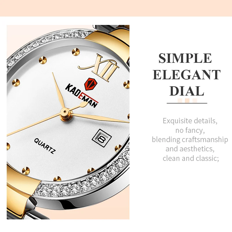 You are looking for "KADEMAN Elegant Woman Watch Women Crystal Diamond Watches Golden Stainless Steel Clock Lady Quartz Wrist Watches Montre Femme" , this product is ready to be purchased. don't forget to bookmark this site, so you can come back here anytime. Get special discount by shopping on aliexpress site, because new buyers will get a decent discount coupon. To buy this product, please click the buy link bellow.