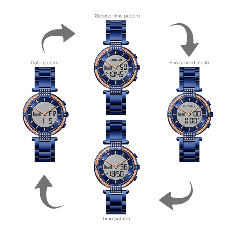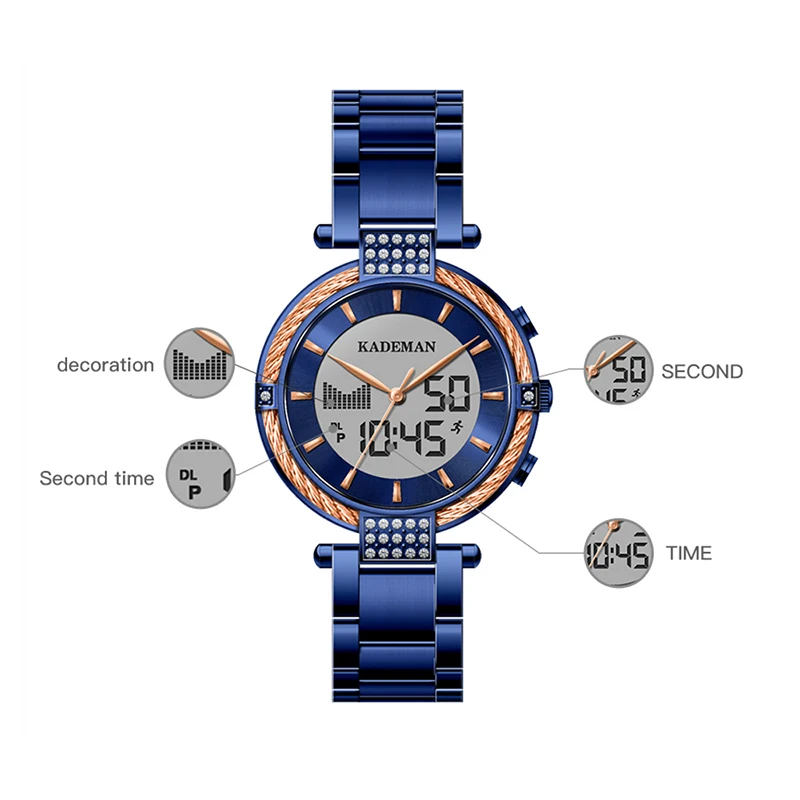 | K9080 Kademan New Elegant Quartz And Digital Women Watch LCD Screen Luxury Business Style Fashion Waterproof Relogio Feminno |